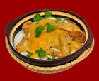 材 料:鸡、粗盐、纱纸、锡纸、大茴香、千里香、丁香、麻油 、甘草、葱姜、盐等。 做 法:鸡洗净风干至越干越好,将两只鸡脚从尾部插入肚内,用纱纸包好,以牙签穿过鸡颈及鸡尾固定位置,镬烧热,放入粗盐至黄色,煲底铺入锡纸再将约1/3粗盐平均铺于锡纸上,放入鸡,将余下的粗盐铺面,盖煲以慢火焗6分钟,将鸡双反转,再焗6分钟,最后熄焗12分钟即成。 口 感:盐焗鸡色泽金黄,入口后有一股独特的美味沁人心脾,皮脆肉嫩,鸡骨发酥,鸡肉甘香嫩滑,令人回味无穷,就是那鸡骨,都要用蘸料浸渍后嘬了嘬才肯遗弃,味道之鲜美,直让人 “连骨头也不放过”。 |