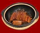 材 料:梅菜、五花肉、盐、水等。 做 法:五花肉放入锅中大火煮至八成熟,捞出擦去水分抹上酱油,炒锅放油烧至八成热,将五花肉皮朝下放入炸至呈深红色,炸好后切成大长片,肉皮朝下放至碗内,肉上放梅干菜后倒入酱油,入蒸锅蒸约30分钟至肉软烂,关火取出碗,将碗倒扣,使肉在上,梅干菜在下,最后将汤汁淋上即可。 口 感:猪肉外焦内嫩,菜干的香味也深深渗透进了肉内,肥而不腻,而且梅菜吸油,五花肉又会带着梅菜的清香,梅菜和肥五花肉的搭配可以说是“天造之和”! |