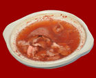材 料:猪肝、瘦肉、猪粉肠、枸杞叶、咸菜、酒曲等。 做 法:将猪肝、瘦肉切成薄片,猪粉肠刮净,肠内异物洗净,切成段,把切好瘦肉拌入薯粉。起镬放入汤水,加咸菜、糟汁待汤水滚沸时再加入猪肝、瘦肉、粉肠调味,滚煮到刚熟时上碗即成。 口 感:肉质爽滑,汤汁鲜美,营养丰富,是众多客家人喜爱的一道特色美味汤。 |