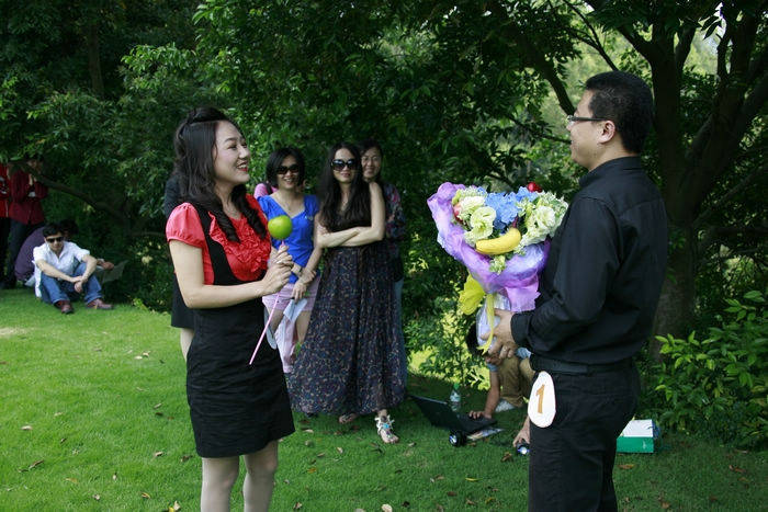 图为选手在进行求婚创意PK 图为选手与颁奖嘉宾合影