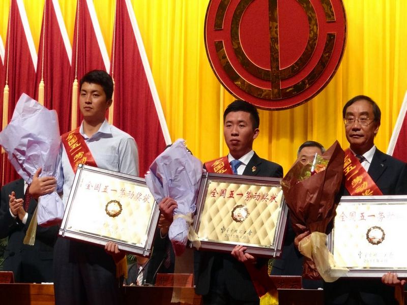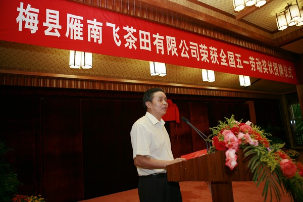 2011年04月29日上午,广东省庆祝“五一”国际劳动节暨劳动模范表彰大会在广州隆重召开。大会向今年受表彰的19个全国五一劳动奖状、70名全国五一劳动奖章、50个全国工人先锋号的集体和个人代表及179名广东省五一劳动奖章和198个广东工人先锋号获得者代表颁奖。梅县雁南飞茶田有限公司荣获“全国五一劳动奖状”荣誉称号,叶林副总经理代表雁南飞茶田有限公司出席表彰大会并领奖。