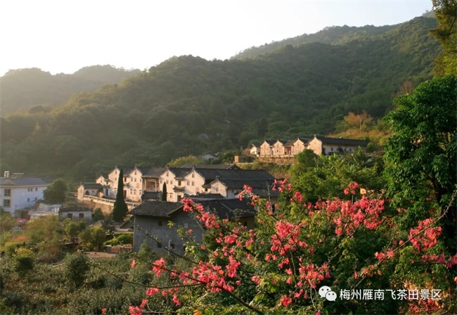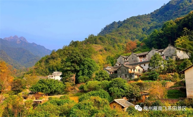 三美:自然美 自然美:云雾缭绕,三面环山,古建筑成群,构成了如诗如画的桥溪古韵。一条阡陌纵横的石道于两山间沿溪逶迤而上,或途经民居,或穿越丛林,或越山而过。溪水叮咚、虫鸣鸟叫;满山苍翠、遍地鲜花、星罗民居,桥溪村就是一幅美丽的田园风光画。