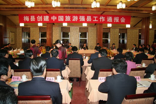 12月2日,梅县顺利通过创建中国旅游强县检查验收,创建工作通报会在雁南飞茶田召开。
