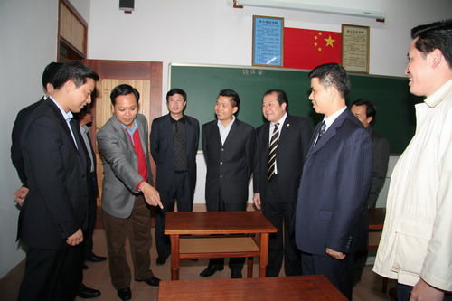 图3:杨荣森副局长与梅州市、梅县领导视察新村长教小学