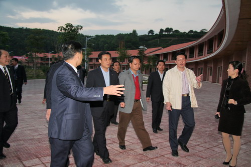 图2:杨荣森副局长与梅州市、梅县领导考察茶田新村建设情况