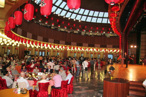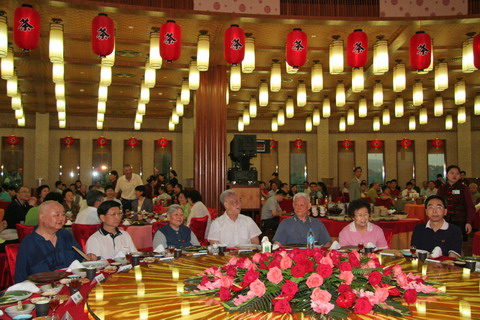 5月12日晚,梅州市委、市政府在雁南飞围龙食府设宴,欢迎前来参加纪念活动的各级领导和嘉宾。中央政治局委员、广东省委书记张德江,原全国人大常委会副委员长邹家华,原全国政协副主席叶选平,广东省委常委、常务副省长钟阳胜,省委常委、广州市委书记朱小丹,省委常委、广东省军区司令员辛荣国少将,省委常委、宣传部长林雄,省人大常委会副主任钟启权、游宁丰、汤维英,省政协副主席柯小刚,全国人大常委、香港金利来集团董事局主席曾宪梓博士等中央、省、市领导,叶帅子女、亲属及身边工作人员,叶帅生前的老领导、老战友、老同事的后人,省有关老同志,梅州籍在京、在穗的老同志,广东省直有关部门,兄弟市有关负责同志,华侨、港澳同胞代表,以及有关文化、旅游的专家学者、企业家等共1000多人参加了欢迎晚宴。