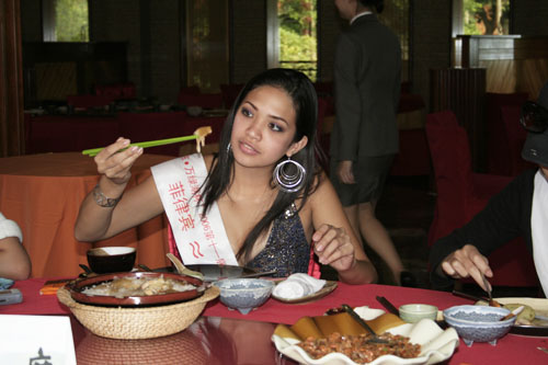 参加2006年国际旅游小姐总决赛的40多位佳丽莅临雁南飞茶田。