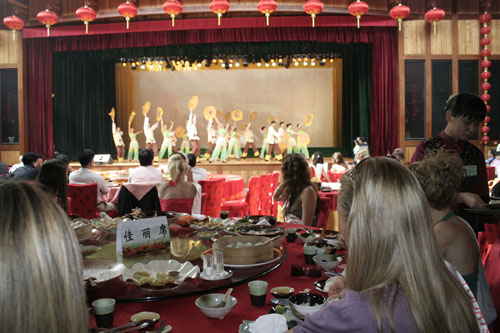 图四:各国佳丽观看雁南飞山歌艺术团表演节目