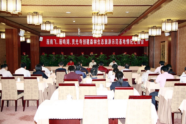 今天上午,由省林业局、省旅游局联合组成的考评小组对雁南飞茶田景区开展“2009广东省森林生态旅游示范基地”评选工作进行考评验收。由省旅游局人事处副处长陈锡泰率领的考评小组听取了雁南飞茶田关于开展森林生态旅游示范基地的工作报告后,又与市县有关领导一起,实地考察了创建示范基地的活动情况。考评小组一致认为,雁南飞茶田资源景观丰富、基础设施建设完备、综合管理到位,各项指标均达到较高的等级,符合森林生态旅游示范基地的要求。