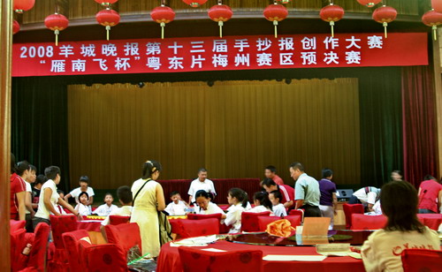 2008年07月19日上午9时,2008羊城晚报第十三届手抄报创作大赛“雁南飞杯”粤东片梅州赛区预决赛在我景区拉开了序幕。