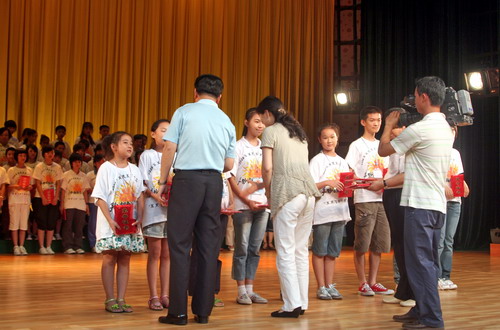 图五:嘉宾们在给获奖的选手们进行颁奖。