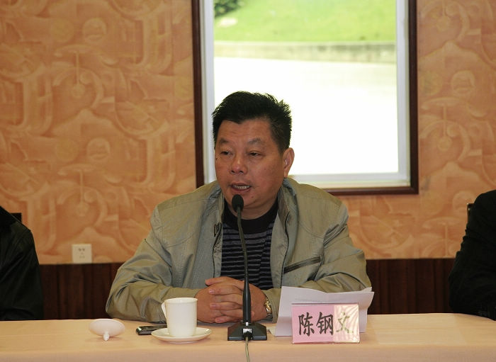 图为梅州餐协常务副会长陈钢文向汕头餐协介绍梅州餐饮业发展情况