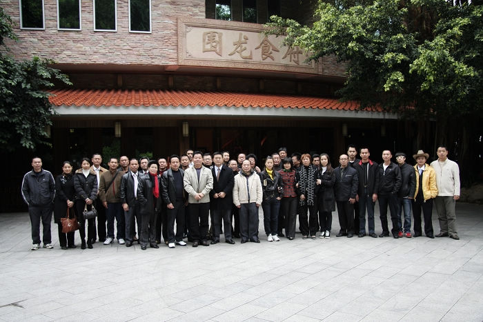 图为两地餐协代表在雁南飞围龙食府门前合影留念