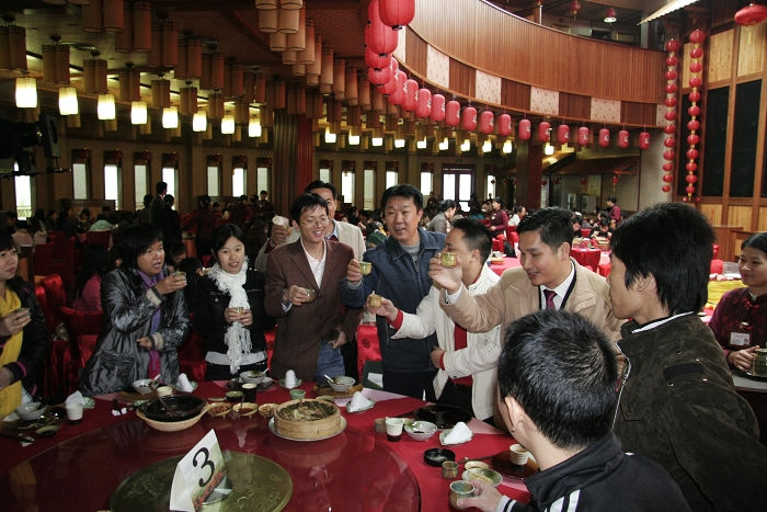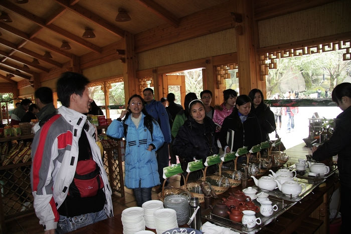 今天上午,由深圳宝中旅行社为主组成深圳各大旅行社雁南飞茶田景区采线团一行一百多人抵达雁南飞茶田景区,了解景区的旅游设施,服务项目及相关的配套设施等,景区设宴招待了采线团一行。