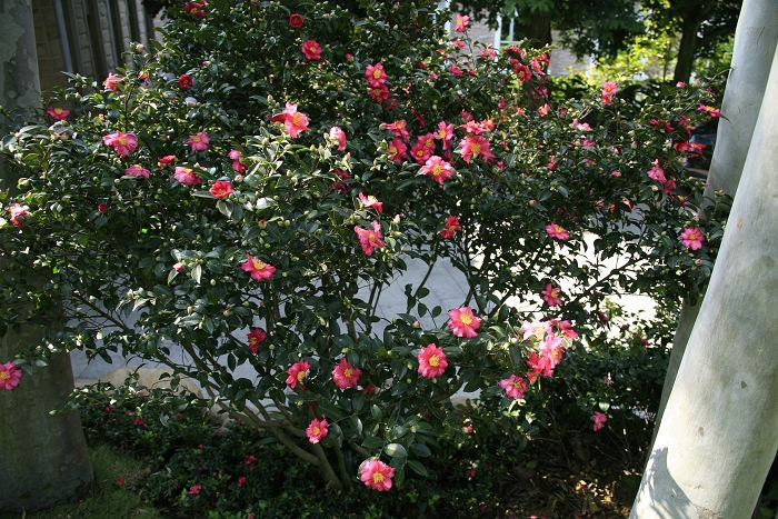茶梅树形矮小,为常绿灌木。因其花型兼具茶花和梅花的特点,故称茶梅。主产于我国江苏、浙江、福建、广东等沿江及南方各省。雁南飞引种江浙一带上好的茶梅树种,经过精心栽培,细心管理,种植的茶梅不仅花色瑰丽,淡雅兼备,且枝条大多横向展开,姿态丰满,树形优美。.
