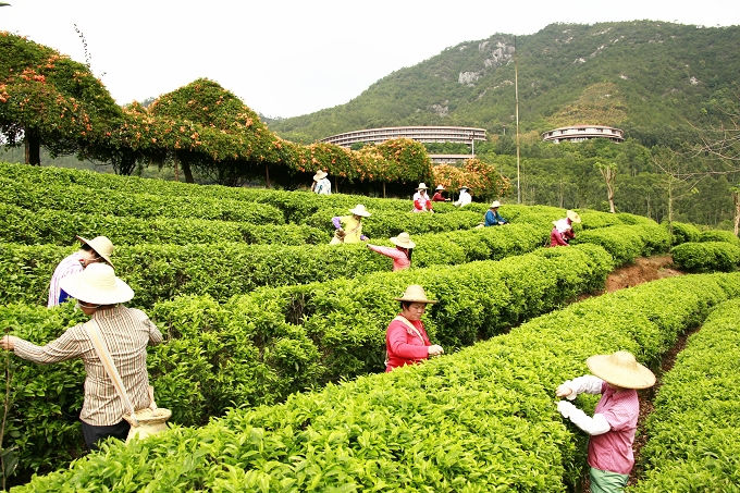 又是一年春来早,嫩绿的新茶在和暧的阳光和雀鸟的欢歌中开采啦!充满生机的茶田里,忙碌的客家采茶女正在采摘每一片嫩芽,收获今年的第一批春茶。采摘春茶是雁南飞茶田景区最好看的流动风景线,是游客踏青旅游的好时节,你是否也亲临雁南飞,与鲜嫩的茶叶亲密接触,呼吸带着茶叶的芳香的空气,做一天采茶人,学一学茶叶的采摘和制作加工。