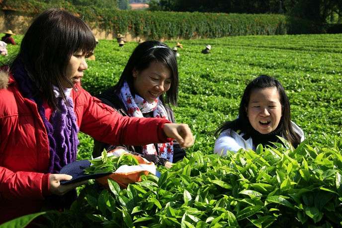 三八国际妇女节适逢春茶的采摘季节,前来雁南飞茶田景区的妇女游客迎着春天温暖的阳光,兴致勃勃在茶田里采茶,成为景区一道亮丽的流动风景。