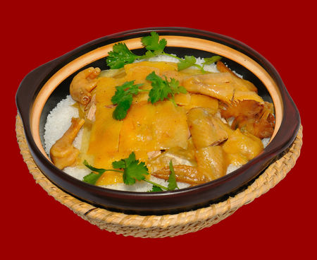 材 料:鸡、粗盐、纱纸、锡纸、大茴香、千里香、丁香、麻油 、甘草、葱姜、盐等。 做 法:鸡洗净风干至越干越好,将两只鸡脚从尾部插入肚内,用纱纸包好,以牙签穿过鸡颈及鸡尾固定位置,镬烧热,放入粗盐至黄色,煲底铺入锡纸再将约1/3粗盐平均铺于锡纸上,放入鸡,将余下的粗盐铺面,盖煲以慢火焗6分钟,将鸡双反转,再焗6分钟,最后熄焗12分钟即成。 口 感:盐焗鸡色泽金黄,入口后有一股独特的美味沁人心脾,皮脆肉嫩,鸡骨发酥,鸡肉甘香嫩滑,令人回味无穷,就是那鸡骨,都要用蘸料浸渍后嘬了嘬才肯遗弃,味道之鲜美,直让人 “连骨头也不放过”。 |