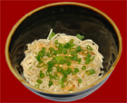 材 料:面条、猪油、蒜仁、葱花等。 做 法:选取手工制作的精大面条,用开水煮熟后捞起装碗,加拌猪油、炸香的蒜仁及葱 粒,即成一碗香喷喷的腌面。 口 感:搭配“黄金搭档”三及第汤,一面一汤,可谓风味万千,为客家人的传统经典早餐,也是海内外游客的最爱。 |
