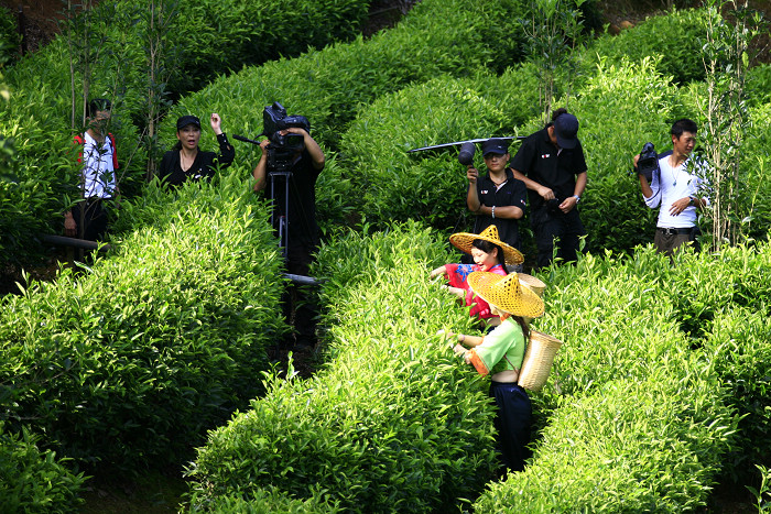 6月29日,由中国中央电视台影视制作中心《大迁徙》节目摄制组走进雁南飞茶田景区,拍摄采茶、对山歌等节目内容。