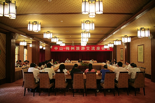 2008年8月14日 ,中山、梅州旅游交流座谈会在雁南飞茶田召开。梅州市旅游局副局长杨贵宏向中山市旅游界、新闻界介绍了梅州市旅游的基本情况;中山市旅游局局长车卫介绍了中山旅游的发展情况,两地旅游界人士就两地旅游业的互补发展作了热烈的发言,提出自己意见和建议。