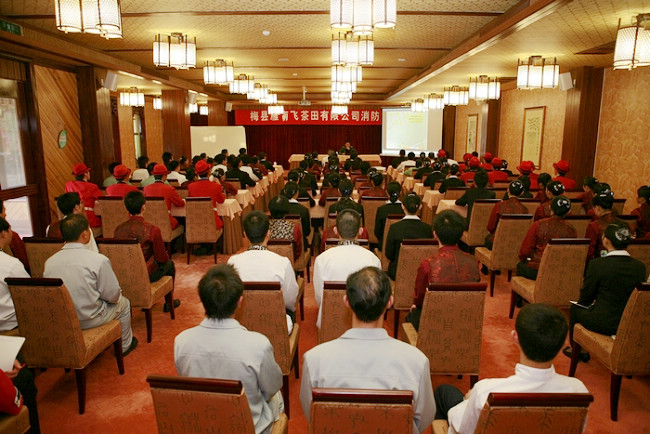 多年来,梅县雁南飞茶田有限公司高度重视消防安全管理工作,持续开展消防安全的培训教育,1213下午,雁南飞茶田又专门聘请梅县公安局消防大队的领导到公司开展消防知识培训学习,提高了员工的消防安全知识和防火安全技能。