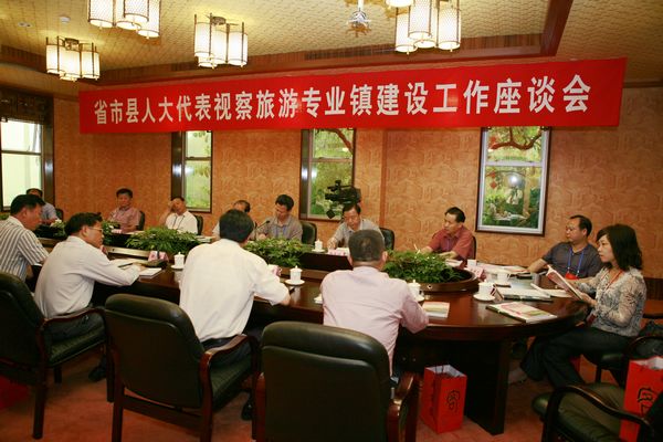 2011年5月23日,省市县人大代表视察旅游专业镇建设工作座谈会在雁南飞召开。