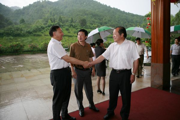 2011年6月25日下午,全国红色旅游工作协调小组办公室胡呈军副主任一行在参加完广东大埔县召开的中央苏区红色旅游联盟第三次联席会议后,马不停蹄的来到梅县雁南飞茶田景区参观考察。梅州市旅游局陈建新局长及雁南飞茶田景区叶祖根总经理等有关领导等陪同参观。