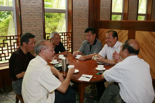 7月13日,赣州市烹饪餐饮协会常务副会长李茂华一行44人来到雁南飞考察,广东烹饪协会副会长、梅州市餐饮行业协会会长、梅县雁南飞茶田景区总经理叶祖根接见了李茂华副会长一行并与他们合影留念。