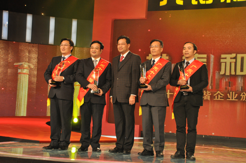 1月6日晚,由广东省委宣传部主办的“广东十大和谐企业”颁奖典礼在广东电视台隆重举行。广东宝新能源股份有限公司荣膺“广东十大和谐企业”称号,成为全省山区市唯一获此殊荣的企业。省委常委、宣传部长林雄,省人大常委会副主任陈小川出席颁奖典礼并为获奖企业颁奖。广东宝新能源股份有限公司董事长宁远喜(下图左一)出席颁奖晚会并领奖。