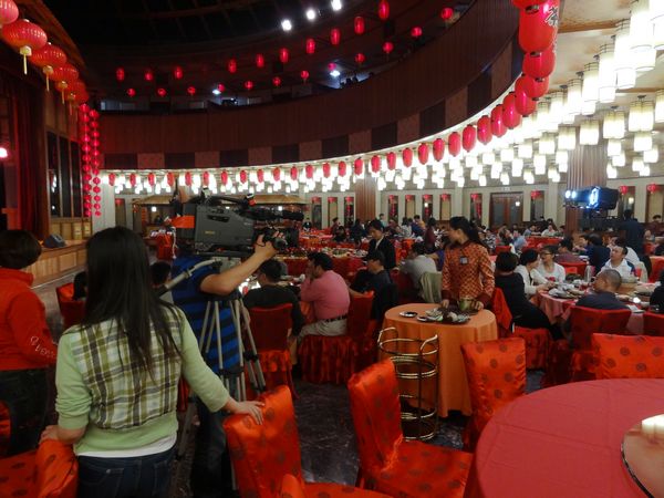 摄制组拍摄雁南飞围龙食府大厅“爆棚”的盛况