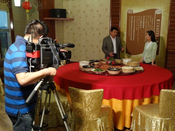 摄制组在围龙食府厢房拍摄雁南飞出品的美食