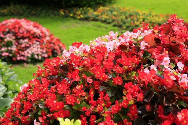 粉红与鲜红纷纭交划的俨如花的海洋般的大片海棠花