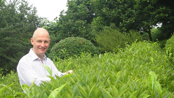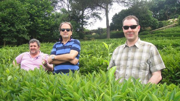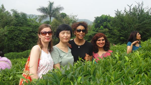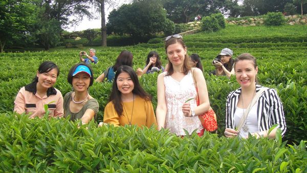 访问团的成员们兴致勃勃地在雁南飞茶园里合影留念