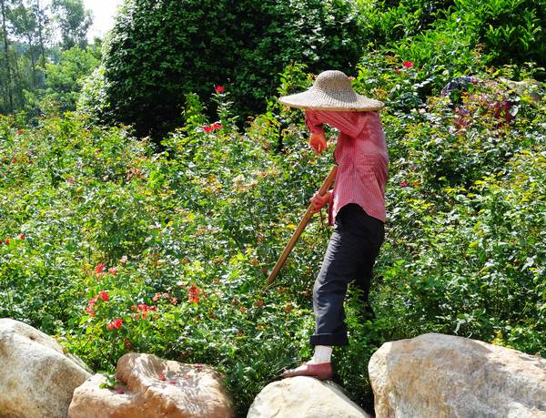 酷暑下为维护景区的整洁默默工作的保洁员