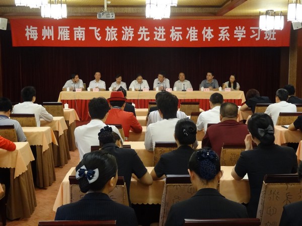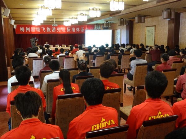 近日,“梅州雁南飞旅游先进标准化体系建设项目启动仪式暨首堂培训课”在雁南飞会议中心隆重举行。广东省标准化研究院熊勇院长、黄娟主任,梅州市质量技术监督局陈万洪副局长,梅县雁南飞茶田有限公司总经理叶祖根及省标院专家组、市技监局有关同志、雁南飞200多名干部职工出席了启动仪式并参加了首堂培训课。