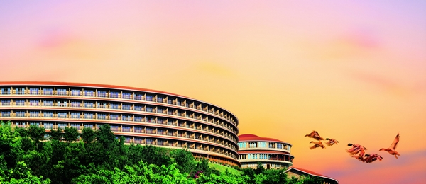 度假村里的围龙大酒店,是以客家人的围龙屋为原型建造的,酒店里设施一应俱全,最妙的是,每个房间都有一个特别设置的阳台,站在阳台上可以尽情观赏度假村的美景。二楼的宴会大厅,每天晚上都有精彩的展现客家文化的歌舞表演。酒店里还有特别调制的药膳,据说原材料全部取自于雁南飞茶田,天然无污染。