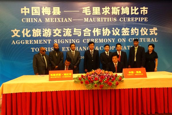 梅县、毛里求斯双方领导人进行现场签约