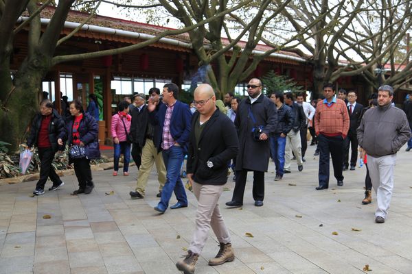 雁南飞是客家的,更是世界的。随着雁南飞品牌在全国乃至世界的知名度越来越高,越来越多的国际友人慕名到雁南飞休闲度假。在元旦假期第三天,雁南飞便迎来了一行来自世界各地的外国朋友。他们在雁南飞闲步赏景,品茗怡情,对雁南飞浓浓的客家文化和茶文化表现出了浓厚的兴趣。