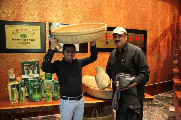 外国朋友在雁南飞围龙食府,对客家农耕用具表现出了浓厚的兴趣。