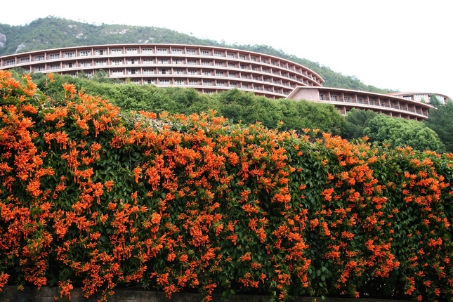 似天然花帘的千米炮仗花瀑布 |