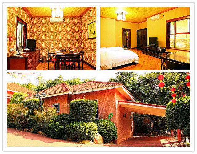 按仿古风格装潢,敞开式别墅,两房一厅,双标客房,配套设施齐全,供应冷暖气,设有吧台,书桌,餐桌,麻将桌等。室内装饰豪华,具有丰富的文化内涵。竹木、小溪、花园环绕别墅,环境高雅幽静,是古朴雅致的诗意歇息所。