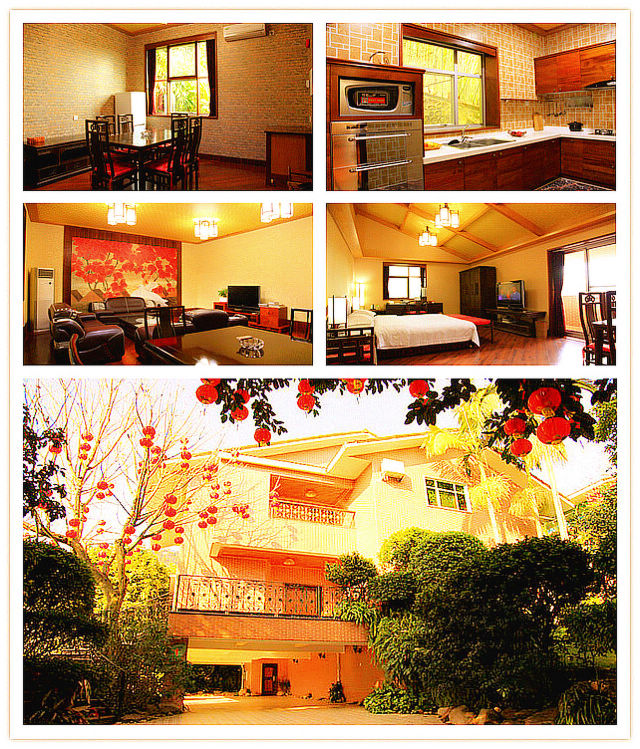 按仿古风格装潢,敞开式别墅,五房两厅。复式,一楼有大厅,烹饪家具一应俱全的厨房、饭厅,两间大客房;二楼有一间配有桑拿房的主卧室,两间大客房以及观景阳台。配套设施齐全,供应冷暖气,设有吧台,书桌,自动麻将桌等。室内装饰豪华,具有丰富的文化内涵。竹木、小溪、花园环绕别墅,环境高雅幽静,让您找到古朴雅致的居“家”之感。