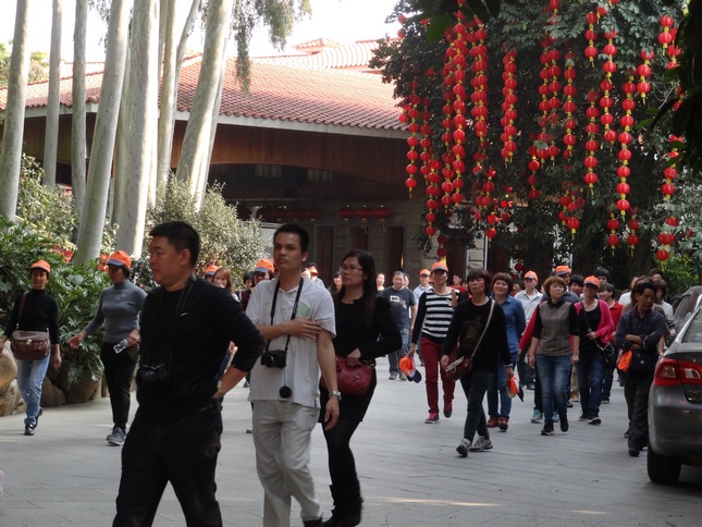 游客休闲漫步于雁南飞茶情阁雁南飞,阳春踏青赏花好去处!