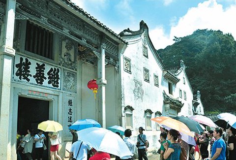 自2012年5月进行保护开发以来,被评为“广东省十大最美古村落”之一的桥溪村,终于在8月28日掀开了神秘的面纱,并以“桥溪古韵”的全新身份迎接四方游客。开放首日便吸引了3000多名游客前往参观游览。 走进“桥溪古韵”,绿树掩映,淙淙溪流声传入耳中。循声前去,溯溪而上,就见到青山环绕下的一座座客家古民居。作为桥溪古韵景区的重要人文景点,十六座保存完好的明、清时期客家传统民居建筑是游客最先游览的场所,因而颇受欢迎。不少游客挨家挨户走进古民居中,仔细阅读镌刻在墙壁上的古民居简介,在天井旁观看客家围屋的内部格局,有的游客还登上木梯,进入二楼参观。一些年代久远、做工精美的木桌木椅、窗棂雕花也吸引了游客的目光。