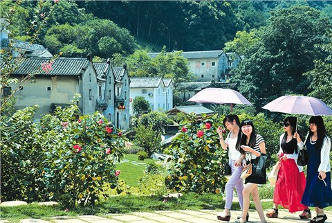 青山环抱,花木簇拥,游客流连忘返。 ( 张明 摄)