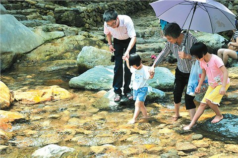清澈的山涧溪流引来游客戏水。 ( 钟小丰 摄)
