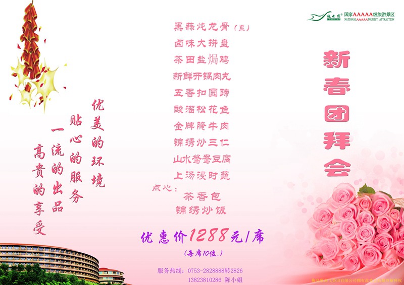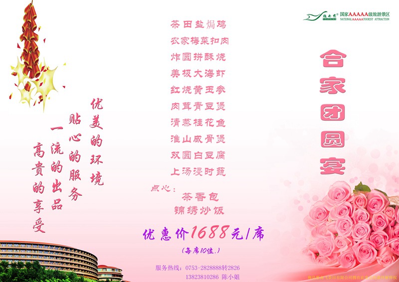 2、免费提供豪华中巴接送(仅限于惠顾“合家团圆”套餐5席以上)