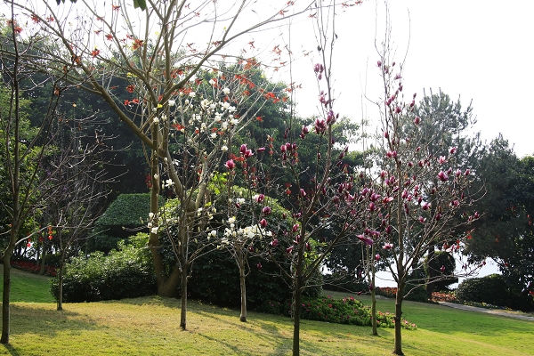 鲜花争艳迎接春天的脚步。春节刚过,伴随着浓浓的春意,雁南飞茶田的鲜花争相斗艳,顿时成了一个花的海洋,各式各样美丽的花朵妆扮着每个景点,让每一个来雁南飞的游客感受这份浓浓的春意。