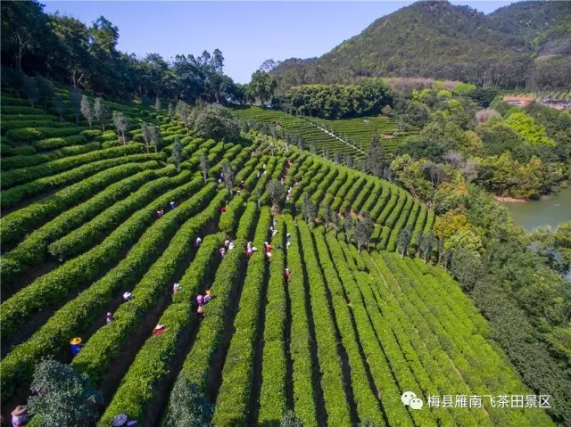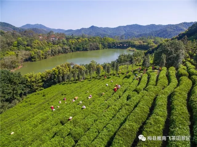 桃红李白,花娇柳媚,正是一年春好处,让我们闻着茶香去国家5A级景区——梅县雁南飞茶田景区旅行。